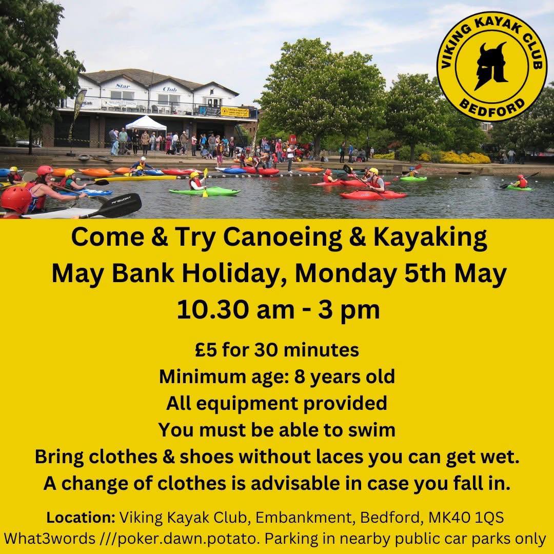Come & Try Kayaking Print Group(s): Global Communications Released: 18th April, 2026 12:00 PM Tag(s): try kayaking bedford Bank Holiday Whats On